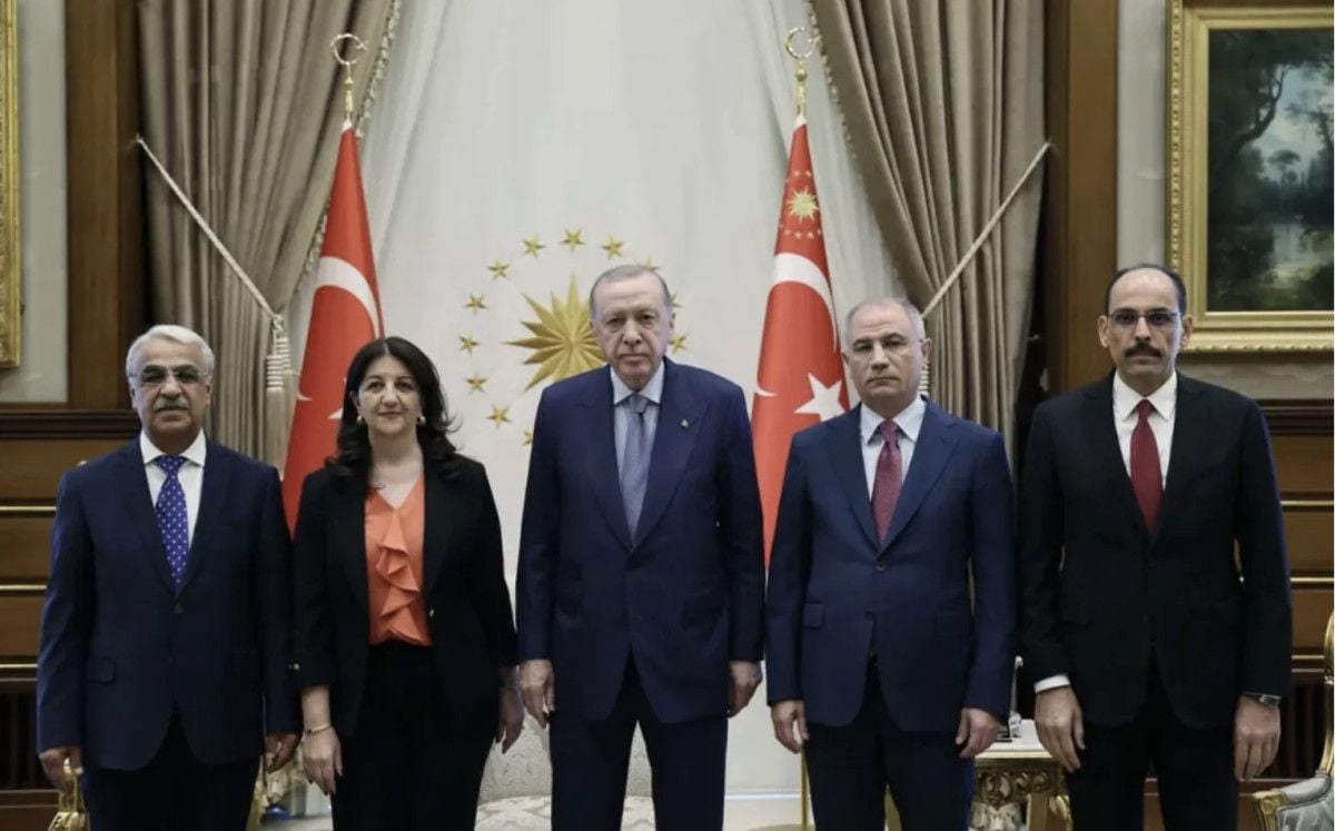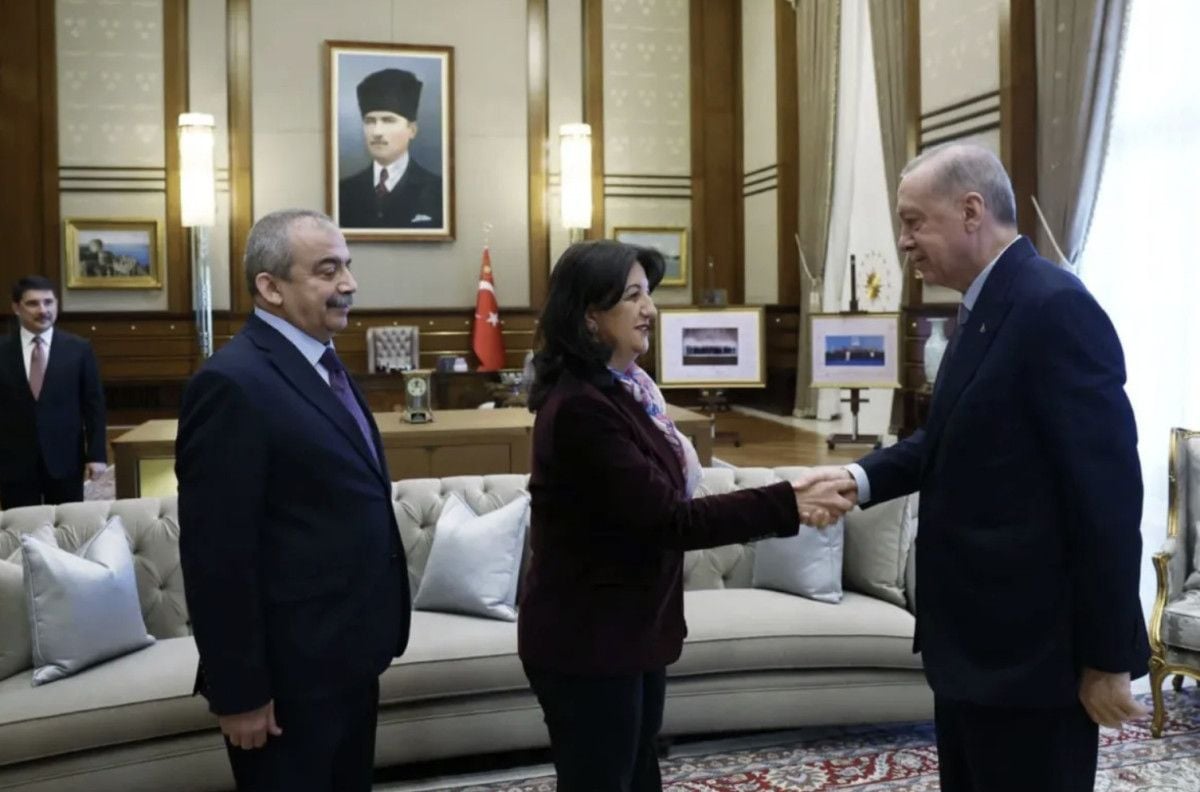 10 Nisan'da Van Milletvekili Pervin Buldan ve yaşamını yitiren TBMM Başkanvekili ve İstanbul Milletvekili Sırrı Süreyya Önder'den oluşan DEM Parti İmralı Heyeti, Cumhurbaşkanı Erdoğan ile Beştepe’de bir araya geldi.