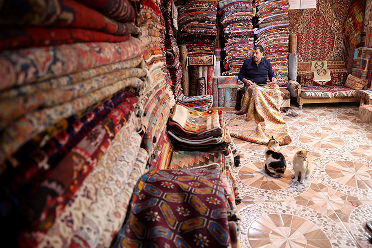 Onarımda, yıllar içinde bir kenara biriktirdiği tamiratı mümkün olmayan eski halı ve kilimlerden elde ettiği ipleri kullanan Akbaş'a, "Kehribar" ve "Sarı" isimli 2 kedi de eşlik ediyor.