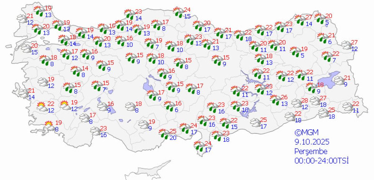 Ancak, özellikle 9 Ekim Perşembe günü neredeyse tüm yurtta beklenen sağanak ve gök gürültülü yağışlar, günlük yaşamı etkileyecek nitelikte.